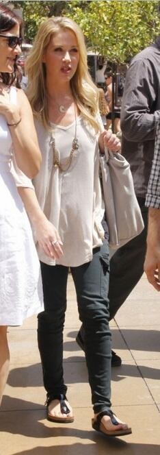 Anche le famose gemelline Olsen, Ashley e Mary Kate, amano le Birkenstock: che sia estate o che sia inverno le scelgono per i loro outfit. Anche quando fa freddo non riescono a rinunciarvi, utilizzando le pianelle a due fibbie con i calzettoni. Un abbinamento insolito se pensiamo che vengono abbinate a un cappotto nero lungo e pesantissimo! Ashley sceglie invece, d’estate, le classiche infradito abbinate a una gonna lunga e una maglia larga e leggera.