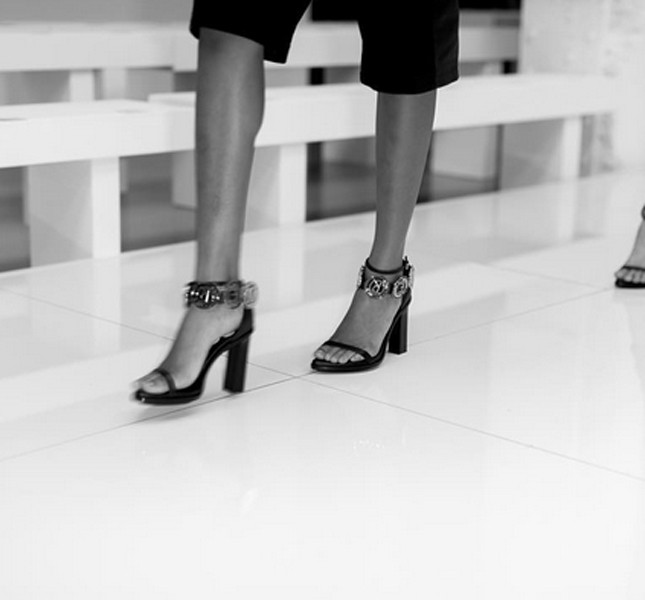 Per gli accessori, la donna Versace è minimal indossa semplicemente delle eleganti mini-clutch e decolleté rigorosamente tacco 12 con cinturino alla caviglia.