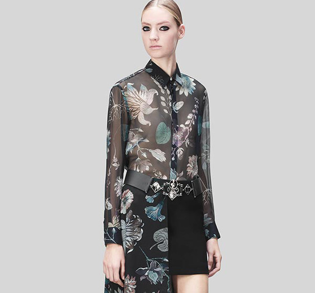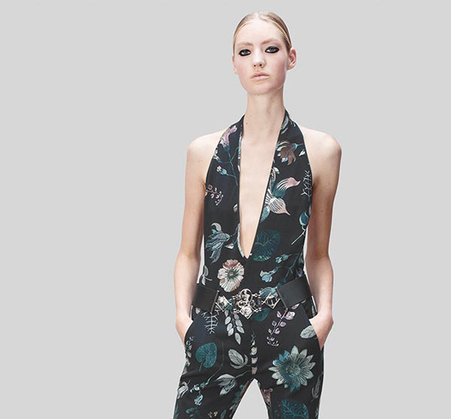 Sulla passerella le modelle hanno sfoggiato bomber con zip, mini-dress dalle linee pulite, jumpsuit con ampia scollatura e maxi cintura in vita, abiti da sera sensuali e super femminili, minigonne indossate insieme a blazer dal taglio maschile, camice senza maniche e con strascico, e ancora pantaloni dritti con stampe floreali.