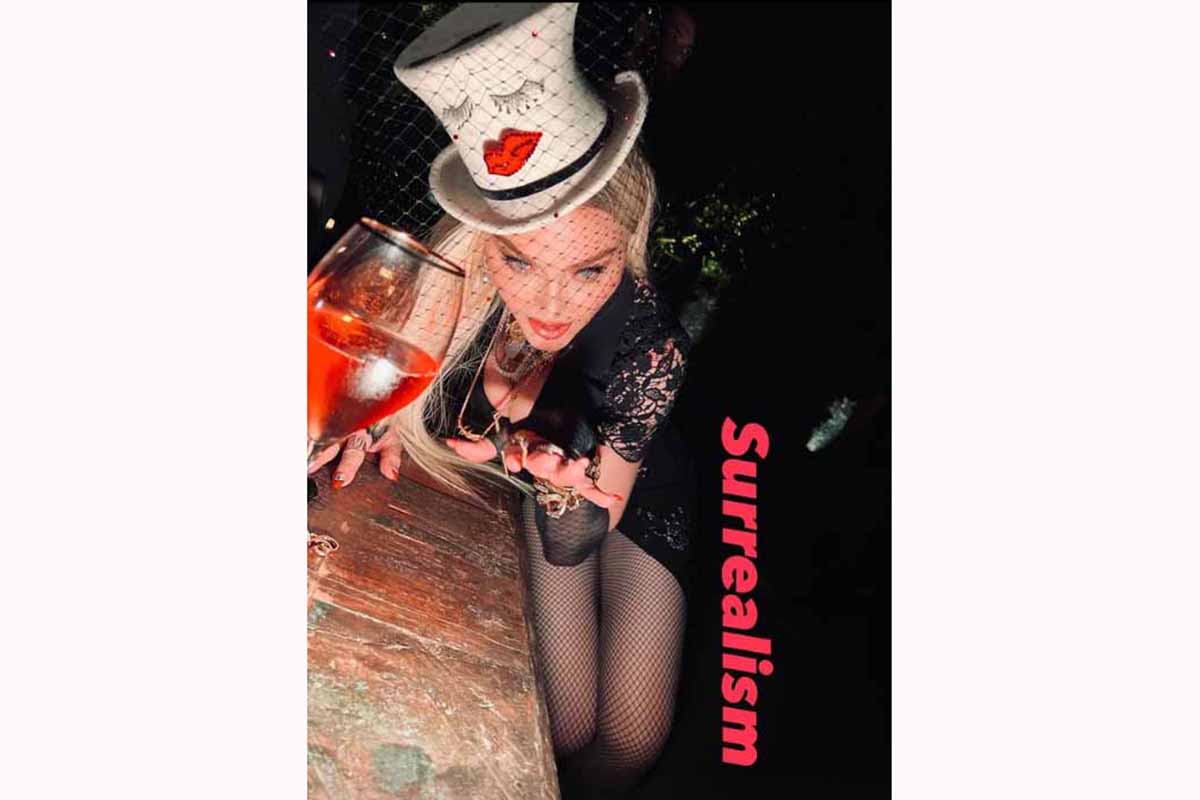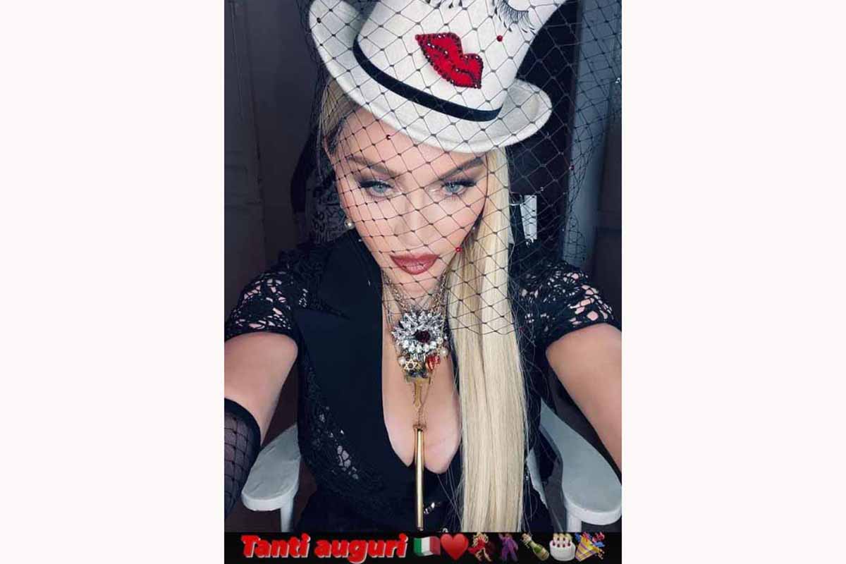 Per celebrare l’anniversario della sua nascita, Madonna ha sfoggiato un vestito nero trasparente con una scollatura vertiginosa, come dettano i trend di stagione, e tenuto chiuso da una fila di bottoni centrali. Solo che la pop star non li ha abbottonati tutti. Ha, infatti, lasciato l’abito sapientemente aperto a metà per mettere in evidenza le gambe coperte dalle intramontabili calze a rete. Ovviamente non potevano mancare i guanti trasparenti con le dita scoperte, un accessorio che la cantante adora da sempre. A completare il look, una cascata di gioielli e un cilindro bianco con la veletta nera. Quanto al make-up, ha puntato su labbra rosso fuoco, eyeliner e ciglia finte.