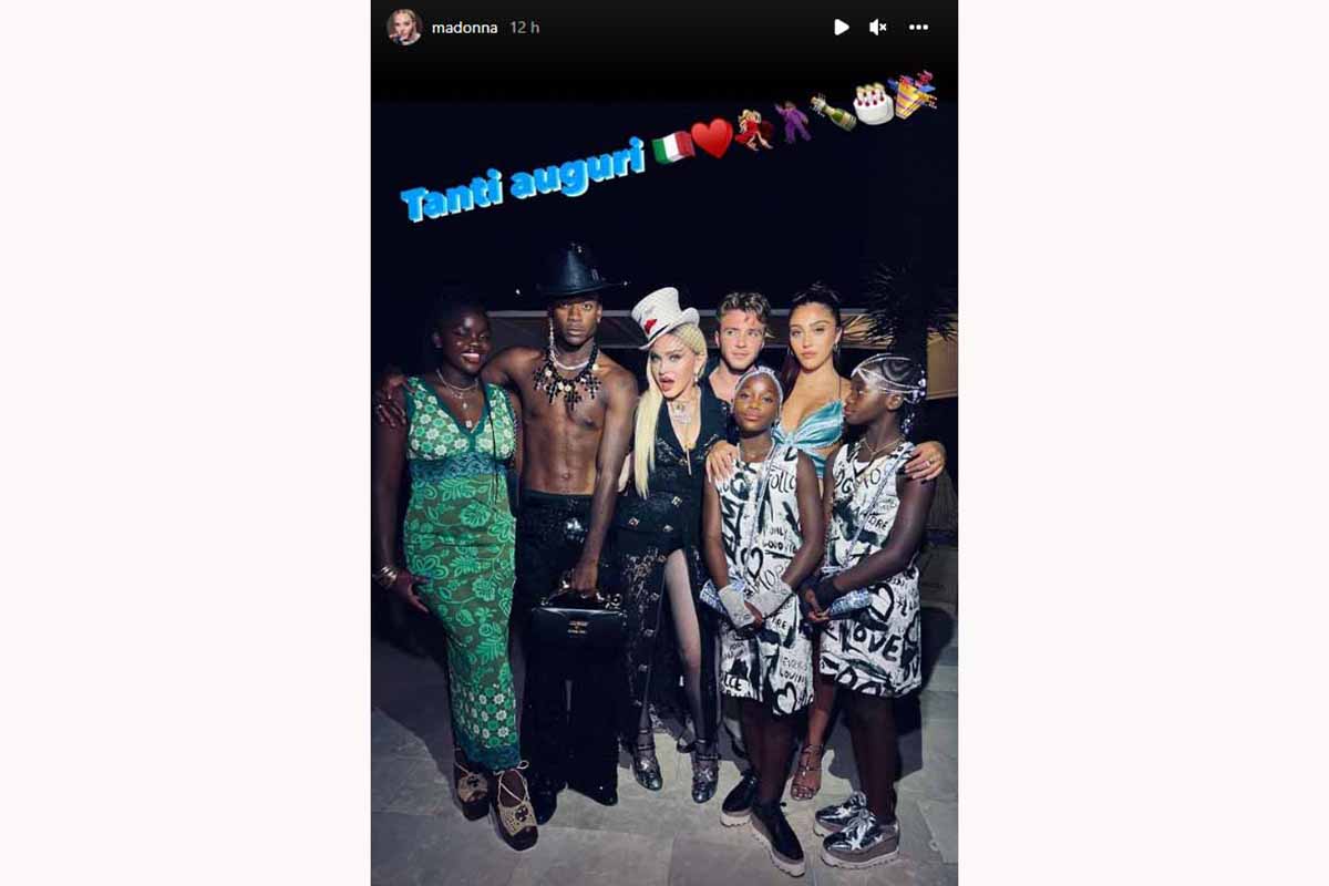 La pop star ha danzato con gli ospiti, con sua figlia Lourdes Leon Ciccone, presente al party con un look superprovocante sui toni dell’azzurro e con le figlie Estere e Stella che indossavano minidress di Dolce&Gabbana e copricapo gioiello.