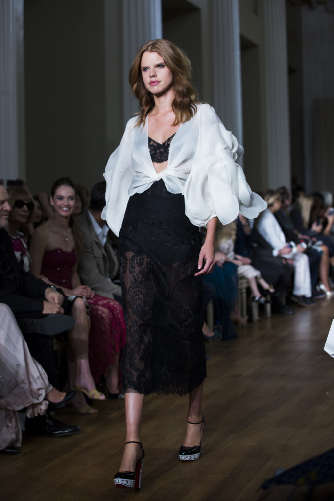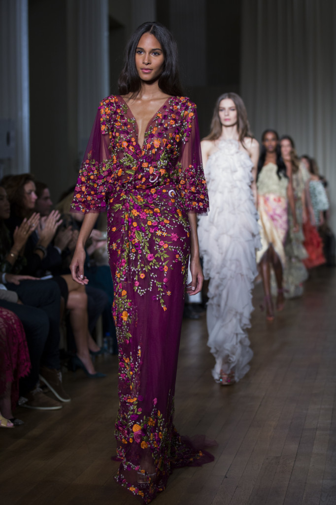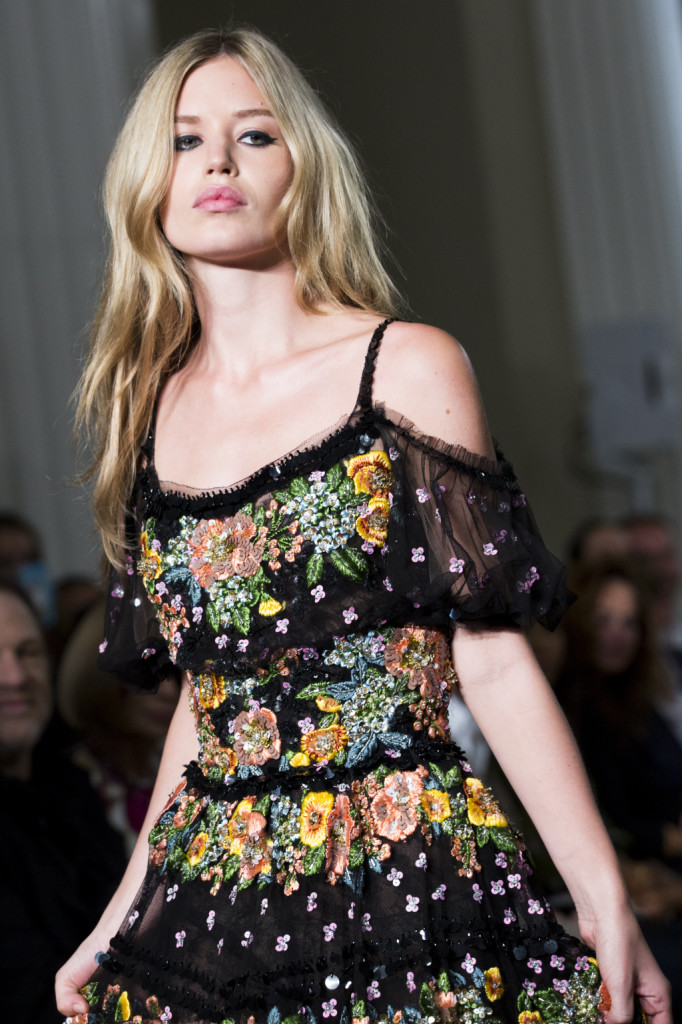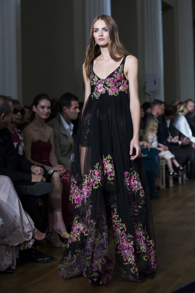 E una sorta di ritorno è pure quello presentato nella sfilata alla London Fashion Week: un ritorno alla donna e alla sua essenza di puro romanticismo. Perché la s/s 2015 firmata Marchesa è femminilità che si esprime in fiori – moltissimi fiori – e ricami, in trasparenze, chiffon e pizzi.