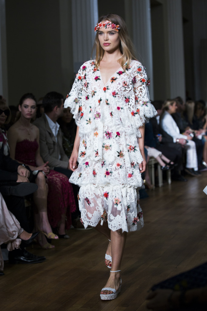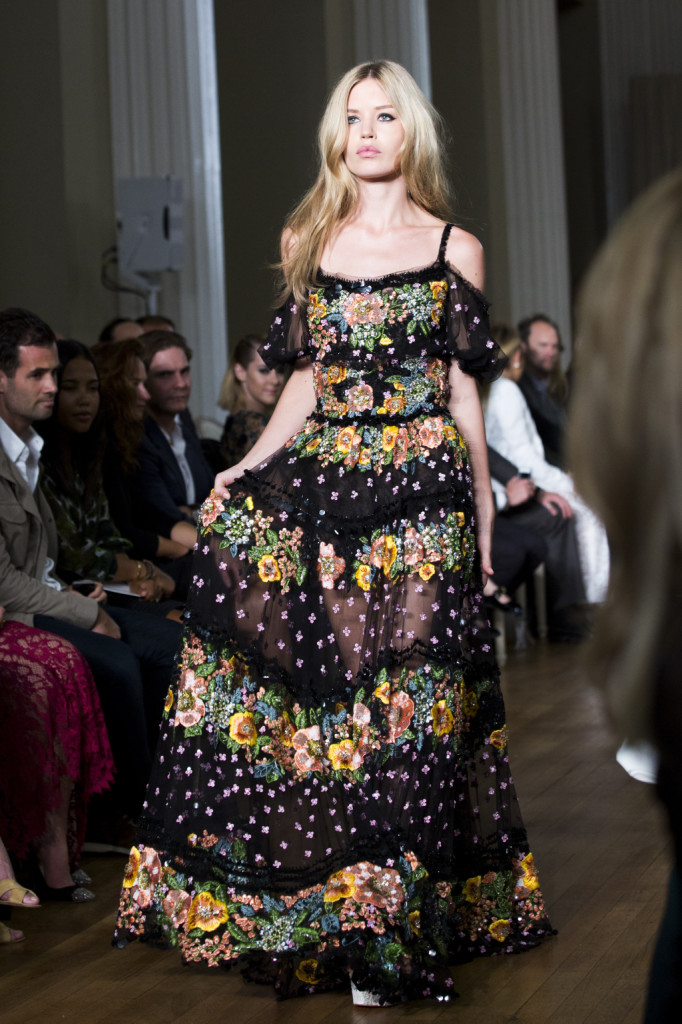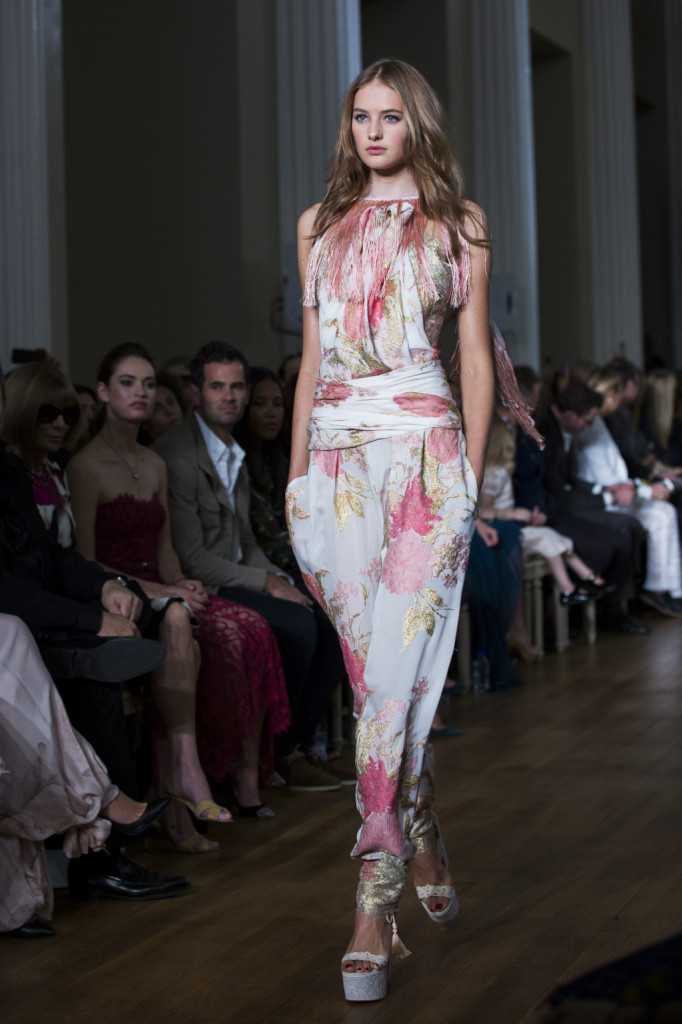 Flower power, tessuti leggeri, eleganza dal tocco vagamente gipsy e indubbiamente romantico: a Londra sfila la collezione primavera-estate 2015 di Marchesa.