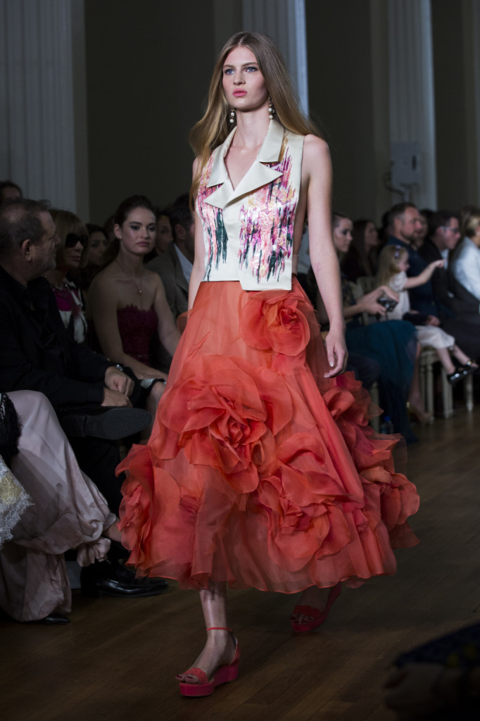 Troppo zucchero? Ecco anche abiti e gonne dalle stampe tropicali e vestiti da cocktail che sono un ottimo mix tra charm ed eleganza. E se qualcuno ha vociferato che la collezione Marchesa primavera-estate 2015 non fosse molto nel mood della London Fashion Week, una cosa è certa: ben celebra – come stile, come evento e come red carpet presente – il decennale della griffe; e per chi ama una donna ultra-femminile e ultra-floreale, è un sogno ad occhi aperti.