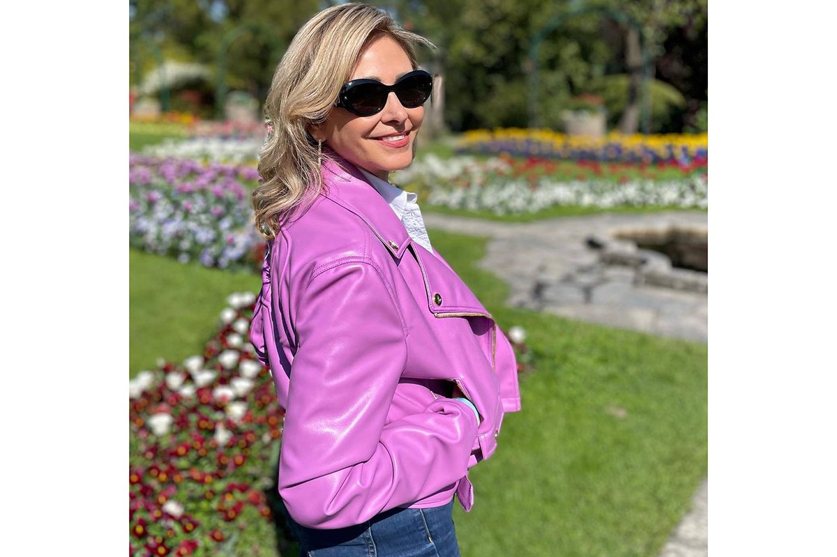 Capelli biondi leggermente ondulati, jeans a zampa, camicetta bianca e sopra uno chiccosissimo chiodo lilla. A passeggio tra i fiori e le piante secolari del Parco Pallavicino di Stresa, sul Lago Maggiore, Marina Di Guardo da lontano sembrava sua figlia Chiara Ferragni. In realtà, le ha solo “rubato” il giubbotto.