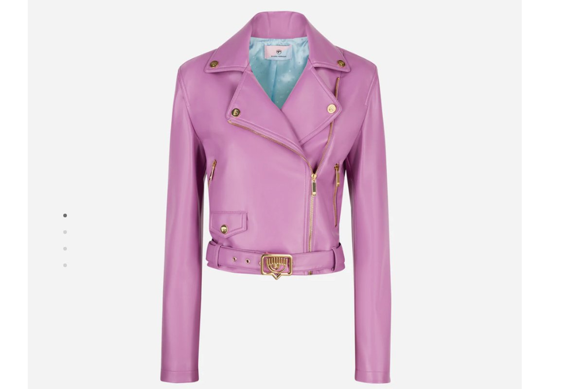 Si tratta del Chiodo Eye Like, color lilla e con patch Eye Like in rilievo sulla schiena. Costa 500 euro ed è il giubbotto perfetto da indossare con i jeans a tutte le età. Ma andrebbe bene anche con abiti romantici o, per le più giovani, con una minigonna.