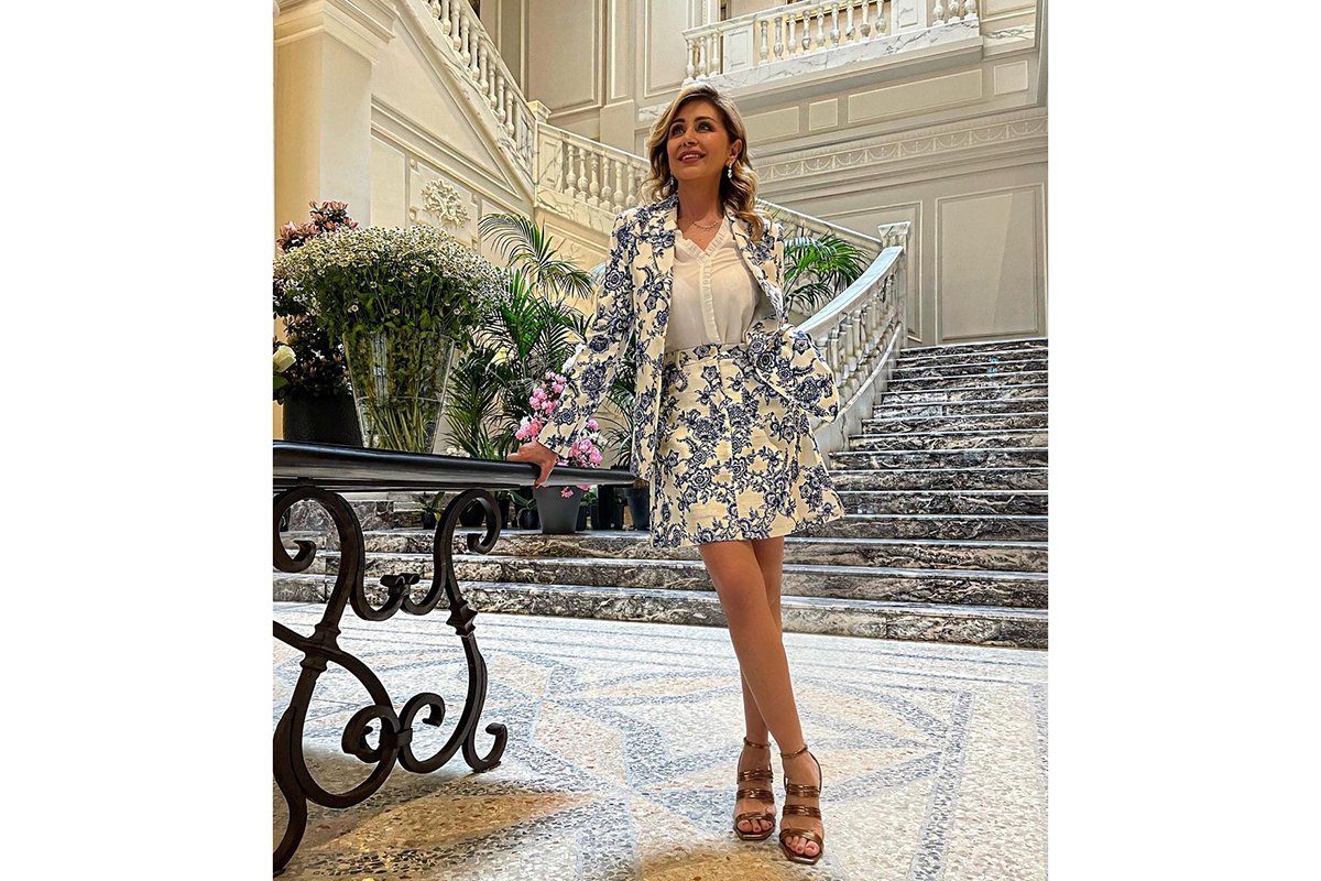 Da tempo, ormai, Marina Di Guardo si diverte a pubblicare sui social le sue foto con gli abiti che più la fanno sognare. Come il tailleur Pennyblack con giacca e gonna in stuoia di cotone stretch stampati a motivi floreali nei toni del blu, ispirati alle classiche maioliche di Delft. Le è bastato indossarlo per raccogliere un mare di like.