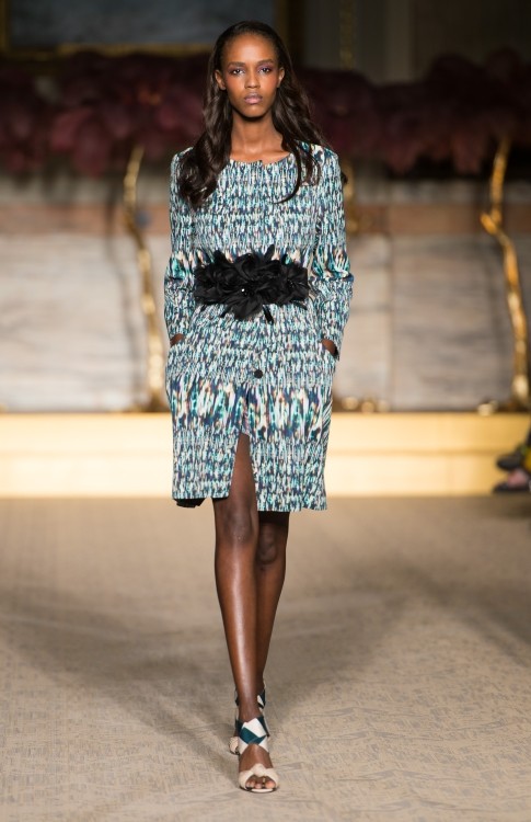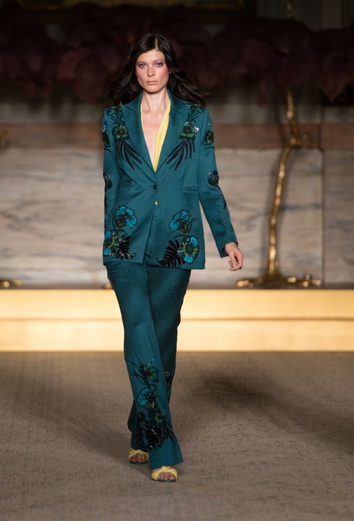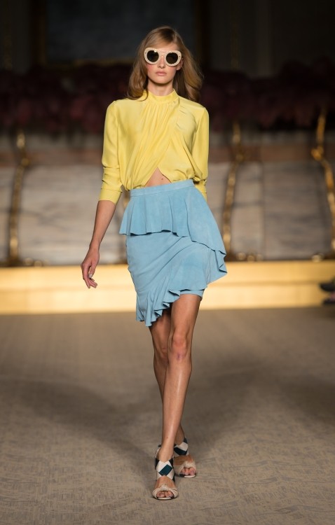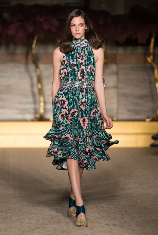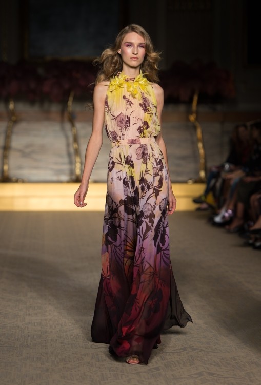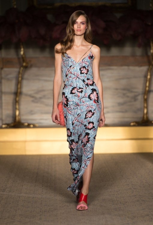 Lo stilista inglese porta sulla passerella della City un’ ispirazione retrò che ci trascina nel fascino degli anni’ 70, con stampe giocose e fantasie a tema floreale, nuance accese e altre tinte più soft e delicate come i colori pastello; il tutto riportato su capi dai tagli iperfemminili, super trendy, a tratti anche romantici. Un look perfettamente bilanciato tra sapore retrò e modernità, in cui ci piace ritrovare l’uso del colore, i pattern e lo stile che caratterizzano da sempre le splendide creazioni di Matthew Williamson.