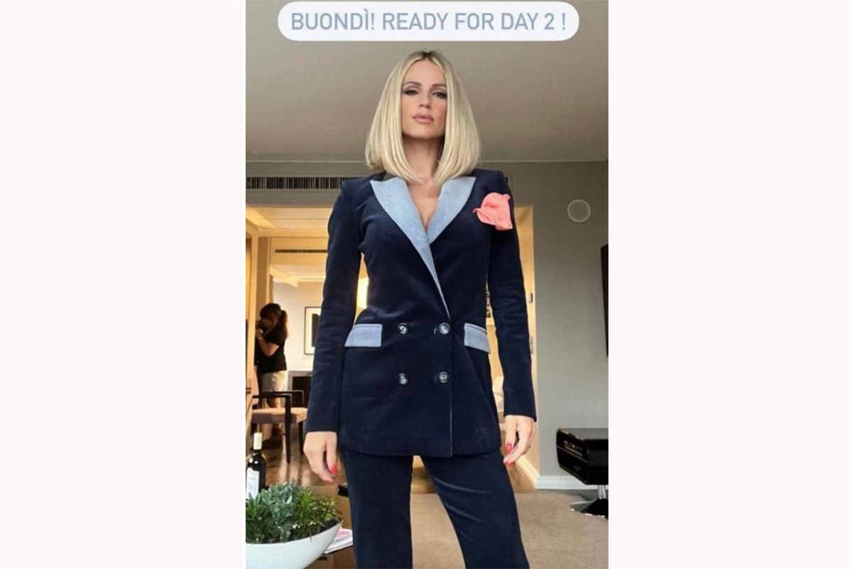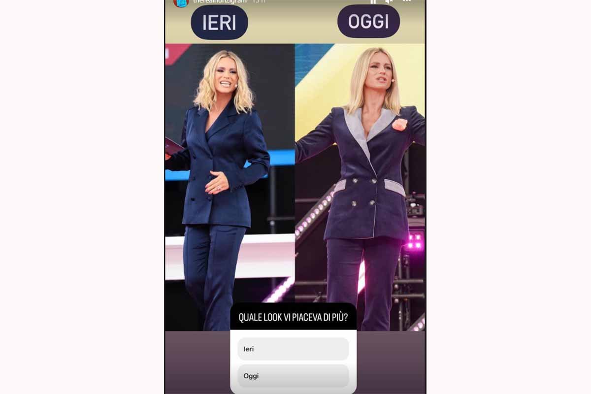 La showgirl ha subito condiviso i suoi outfit con i follower su Instagram, ma non si è limitata solo a questo. Infatti, nelle Storie pubblica le sue foto con entrambi i tailleur e chiede ai suoi fan di votare quello che preferiscono.