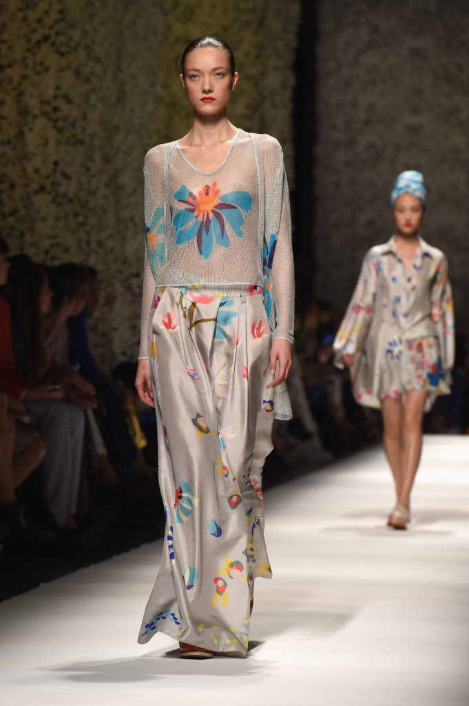 Missoni presenta la sua collezione primavera-estate 2015: abiti eterei, tinte pastello, cromie, fantasie floreali e multicolor. La donna Missoni appare come una ninfa.