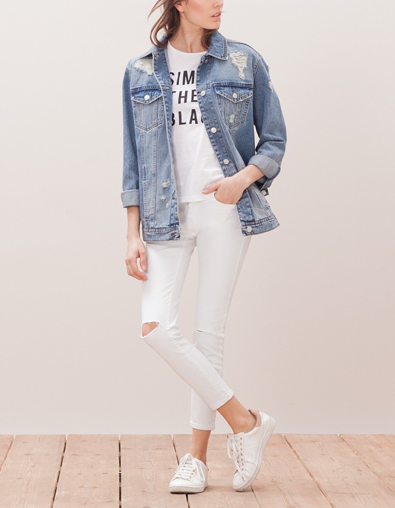 Dopo avere spopolato negli anni ’90 e nei primi 2000, il giubbotto di jeans per un po’ di tempo è sparito dai radar fashion. Ma l’esilio è durato poco e infatti è uno dei must have della stagione primavera-estate 2016. La moda del momento lo vuole con taglio giacca, come il modello doppiopetto di Balmain (837 euro), o in versione maxi o bad boy, come quelli con toppe e orlo a vivo proposti da Stradivarius (da 29,95 euro).