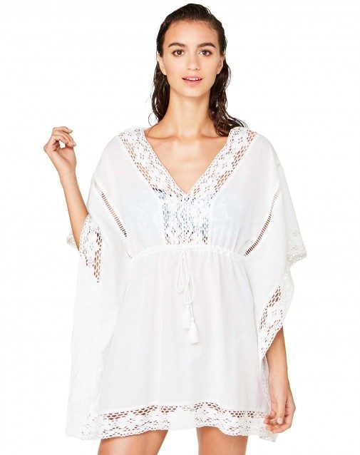 Per il 2017 Benetton ha inserito nella sua collezione un caftano bianco a tinta unita con maniche a tre quarti e in pizzo: decisamente molto chic e adatto a chi non vuole rinunciare all’eleganza anche in spiaggia.