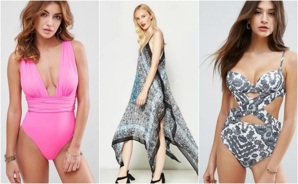 Per quanto riguarda i costumi da bagno, oltre ai classici bikini presenti in ogni forma e colore, Asos propone dei costumi interi molto carini e diversi dai soliti modelli come ad esempio: un costume intero molto scollato e sgambato dalla tonalità rosa acceso, uno a motivi floreali incrociato sul ventre con le coppe e le bratelline ed infine, uno aperto sulla pancia e legato sui fianchi con motivi a quadratini bianchi e rossi.
