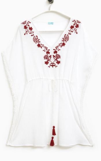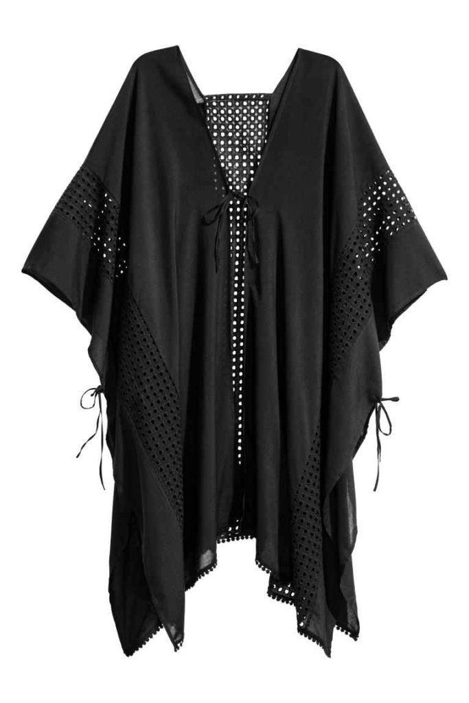 Il poncho è molto simile al caftano, ma ha le maniche ed è corto: OVS ne propone uno bianco con ricami rossi sul dècollète, mentre da H&M sono disponibili un poncho nero con maniche a 3/4 bucherellato sulla schiena oppure in chiffon rosa cipria con motivi stampati.