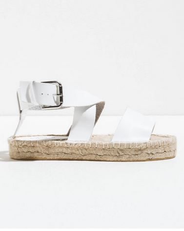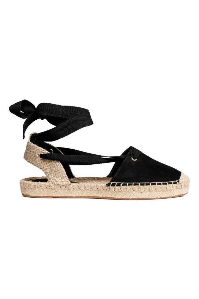 Oltre alle espadrillas con la zeppa, che non sono proprio adatte all’abbigliamento da spiaggia, ne segnaliamo un paio nere intrecciate alla caviglia sempre di H&M e un paio bianche intrecciate ma dalla forma a sandalo di OVS, che si discostano dal classico modello descritto sopra.