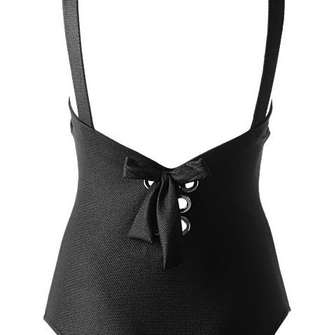Stupendo è il modello nero a balconcino imbottito, con profondo scollo sulla schiena, pannelli ad incrocio e dettagli in tulle trasparente oppure il modello sempre nero e con fiocco sulla parte posteriore.