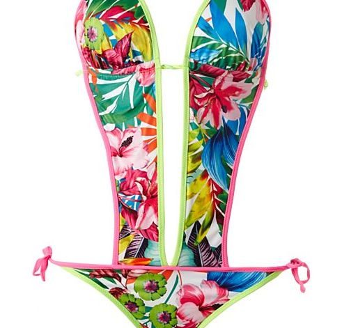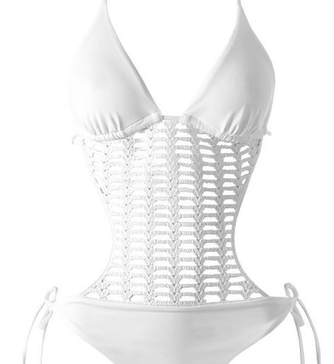 Segnaliamo anche il modello nero con ruches turchesi e decorazione di simpatici e delicati pappagalli oppure il modello bianco in macramè e con laccetti, e ancora il modello super sensuale con cordino al girotorace, fantasia floreale e super scollatura.