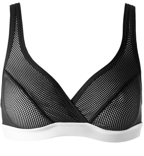 Dal mood sporty-chic è il Top Sport Acqualux nero e rosa fluo con intreccio sulla schiena oppure il modello Top Sport Light bianco e nero traforato sul davanti.