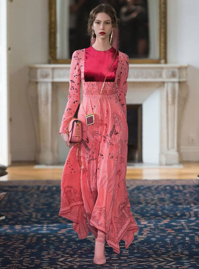 Via libera ai tessuti naturali e grezzi: canvas, lino, tela di cotone soprattutto per camicie ed abiti da cocktail in versione monospalla monocolore o stampato come abbiamo visto sulla passerella di Rochas, Gucci e Saint Laurent. Questa primavera estate 2017 al bando i sandali rasoterra, che lasciano spaziano sandali sandali di media altezza. È il trionfo della zeppa, sempre decorata, magari con fiori come i romantici ricami floreali che si ritrovano nei look in tonalità chiare come ad esempio sugli abiti proposti nella collezione primavera estate 2017 da Valentino. Le maniche diventano maxi sia per abiti che maglie, diventando quasi una scultura ed un elemento decorativo per l’indumento.