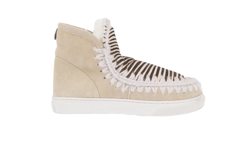 I Mou boots sono stati ideati nel 2002 e sono subito diventati un must nel panorama del fashion internazionale in quanto rispecchiavano il giusto mix tra lusso e casual style tutto senza rinunciare al confort. Nella nuova collezione autunno/inverno 2014-15 l’attenzione è focalizzata sugli short boots che hanno arricchito la forma classica con modelli dal gambale basso alcuni dei quali impreziositi con un bracciale removibile di cristalli oppure i nuovi effetti cracked, glitter luccicanti, applicazioni di borchie e piercing tutti applicati in modo artigianale uno ad uno. Altra novità della nuova collezione Simple Chic è il modello Eskimo, classico e best seller della Mou il quale è stato modificato grazie all’ampliamento della palette di colori utilizzati e all’introduzione della zeppa interna, disponibile in 21 diverse tonalità. Il nuovo Esiko presenta anche una variante snakers dal classico color stone al rock e pink metallic, dall’oro al grigio canna di fucile, oltre ai trattamenti cracked glitter, perlato, pitone e metallic cracked. Non mancano poi le varianti animalier dalle stampe zebrate e leopardate, che affiancano la new entry del ponyskin accoppiato al montone.