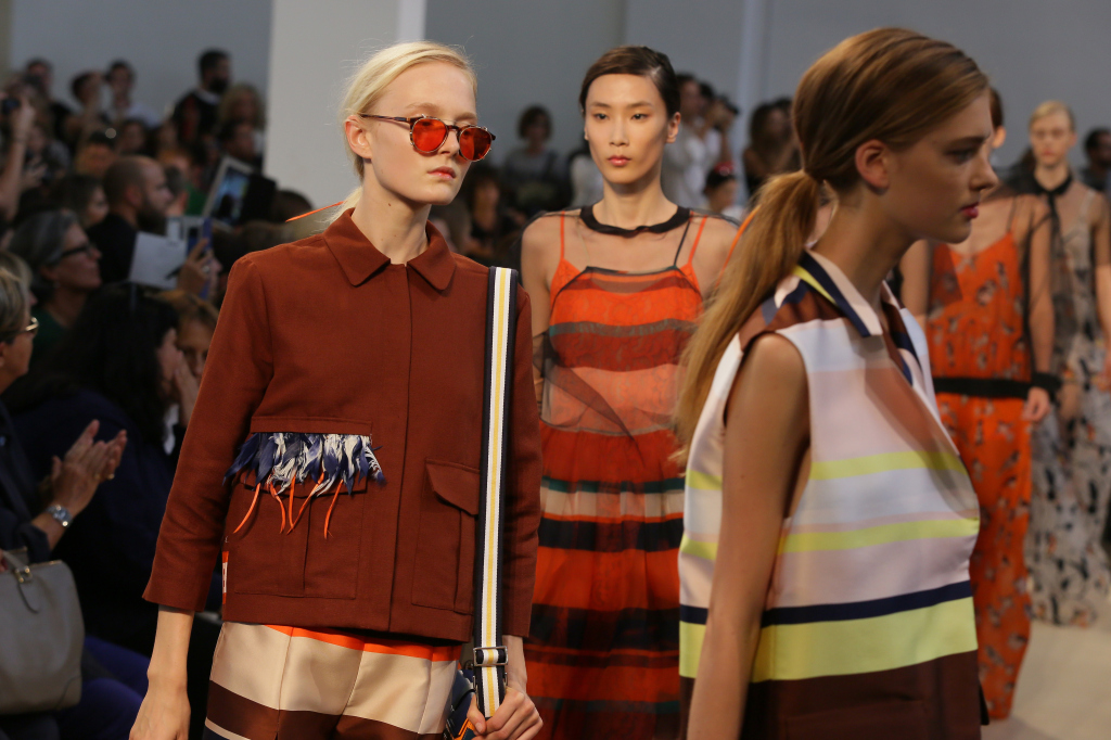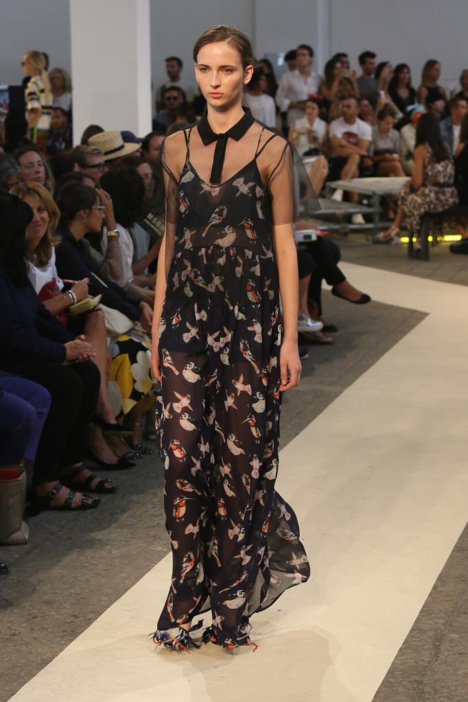 E se nella finzione della trama la musica e i volatili sono le passioni forti dei due protagonisti, Walter e Patty Berglung, marito e moglie in profonda crisi, nella realtà della passerella essi diventano ispirazione e perfino, nel secondo caso, soggetto – assieme allo stesso titolo del libro, i cui caratteri trionfano maiuscoli in accesi colori neon – di abiti, top, giacche e gonne che le modelle indossano con quel mix, quasi una litote, tra grazia-bon-ton e casual-spettinato-quasi-understatement che è decisamente indie.