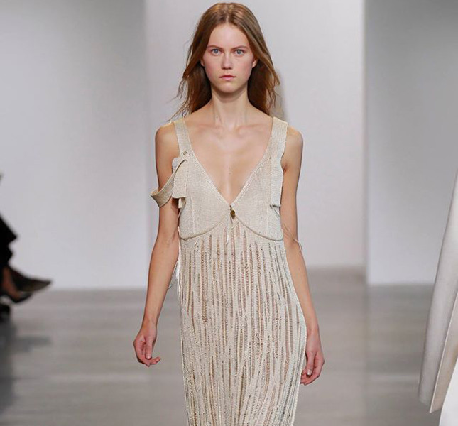 In passerella hanno sfilato long dress fascianti a delineare la silhouette, dallo stile pulito, minimal e quasi ascetico.