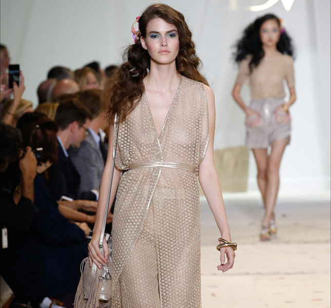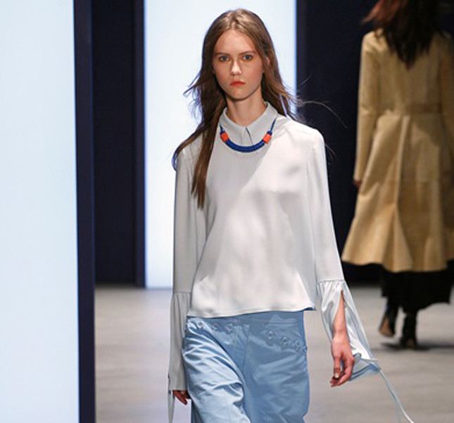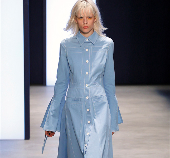 Derek Lam, invece, gioca con lo stile vintage e, infatti, ha presentato una collezione che ci ha portati indietro nel tempo, dritti agli anni ’60. Lunghi trench dai colori pastello caratterizzati da cuciture e bottoni in contrasto, jeans a zampa, maglie dal tessuto leggero e dalle maniche ampie che ricordano lo stile dei “figli dei fiori”.