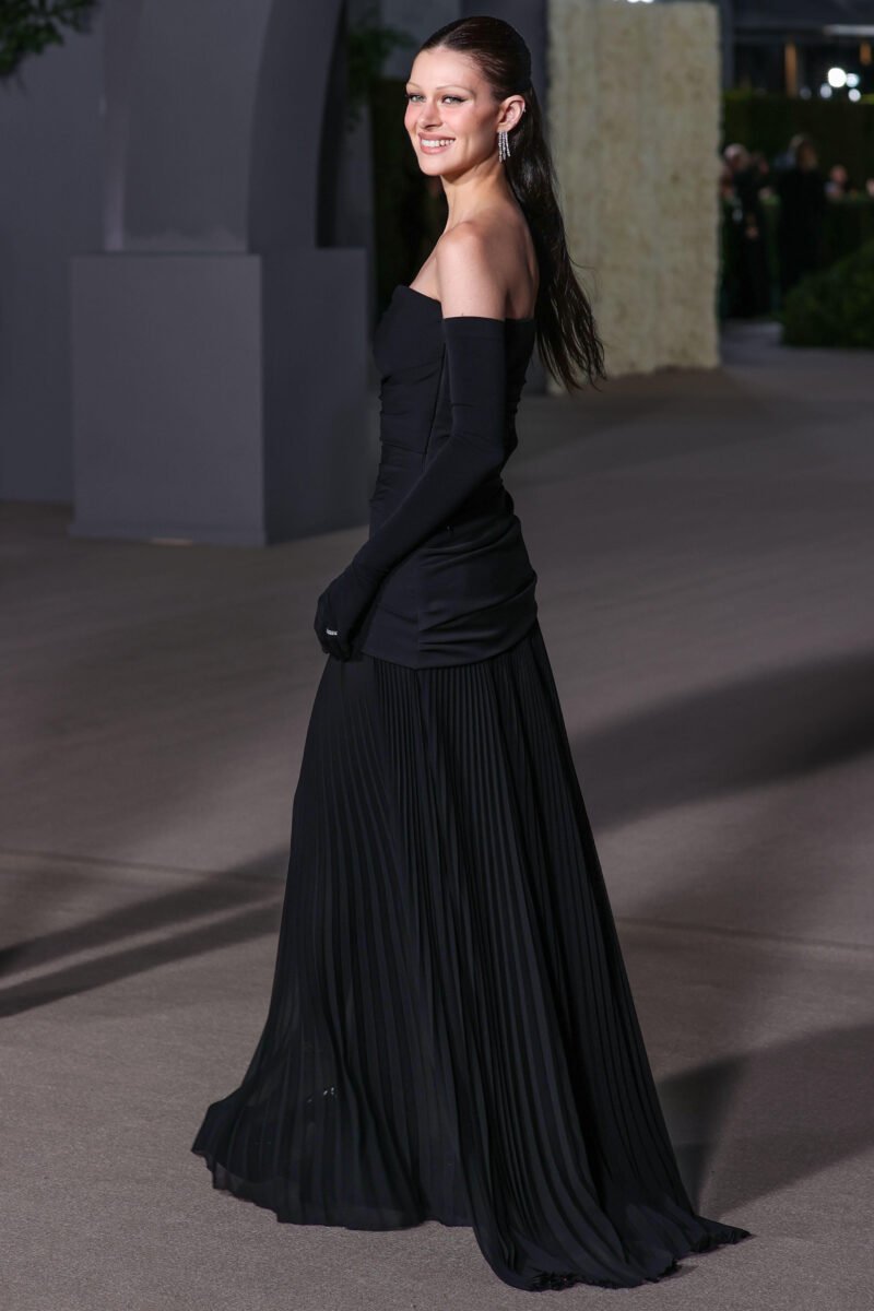 Nicola Peltz aveva iniziato a postare immagini del suo nuovo look già da qualche tempo. Dopo aver abbandonato le setose ciocche bionde, a favore di una chioma color nocciola, aveva progressivamente assottigliato e schiarito le sopracciglia. Nel weekend, sul red carpet dell’Academy Museum Gala, ha tenuto fede a questo trend. L’eyeliner marcato sottolineava l’assenza di peli poco più in alto. Per l’evento Nicola ha optato per il nero, con un sensuale abito lungo di Givenchy, abbinato a preziosi gioielli Cartier. Dopo la sua presenza allo show parigino, qualcuno sperava di vederla in Victoria Beckham Collection. Invece anche questa volta la Peltz ha scelto un altro marchio: come avrà reagito la suocera?