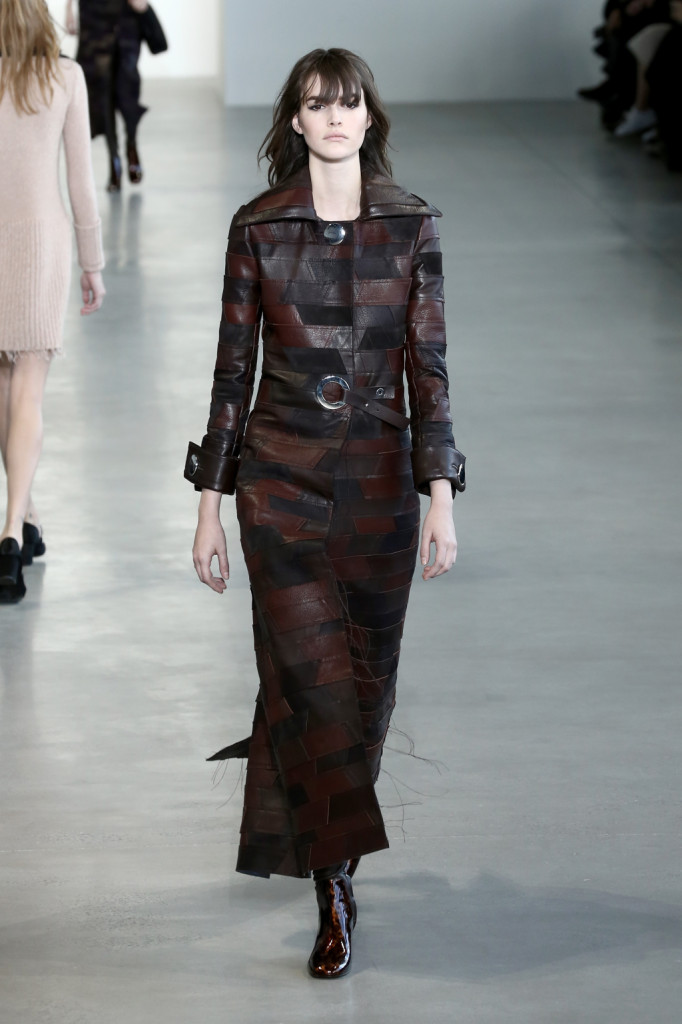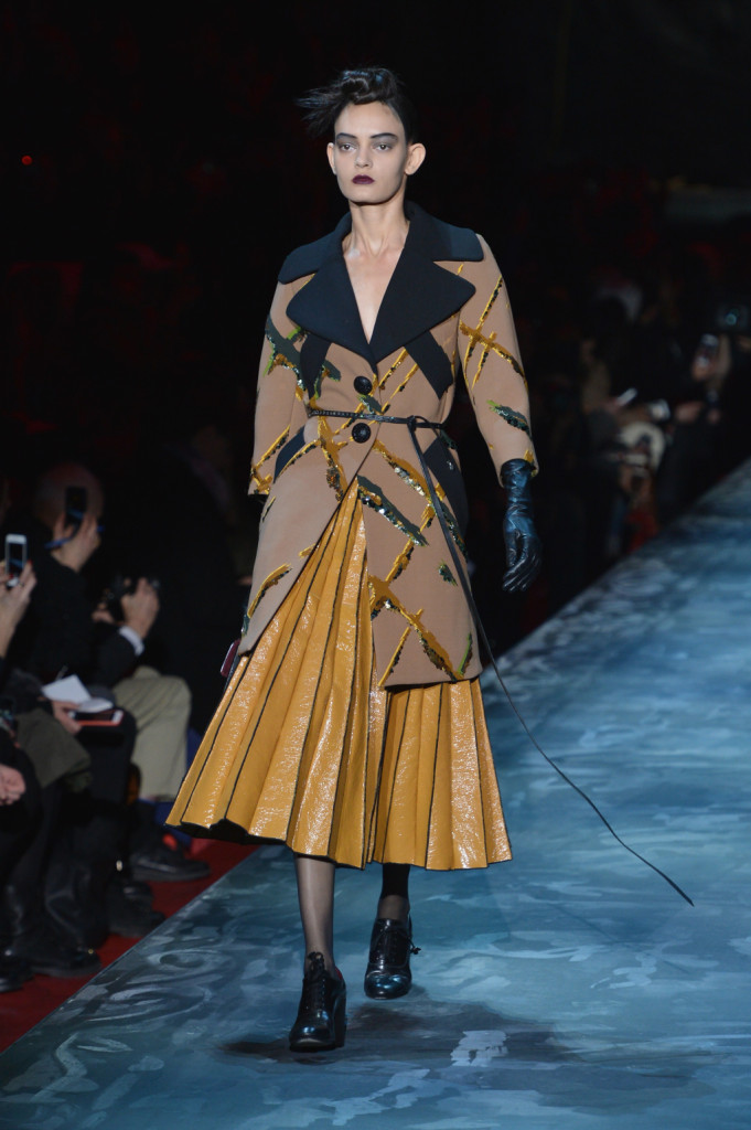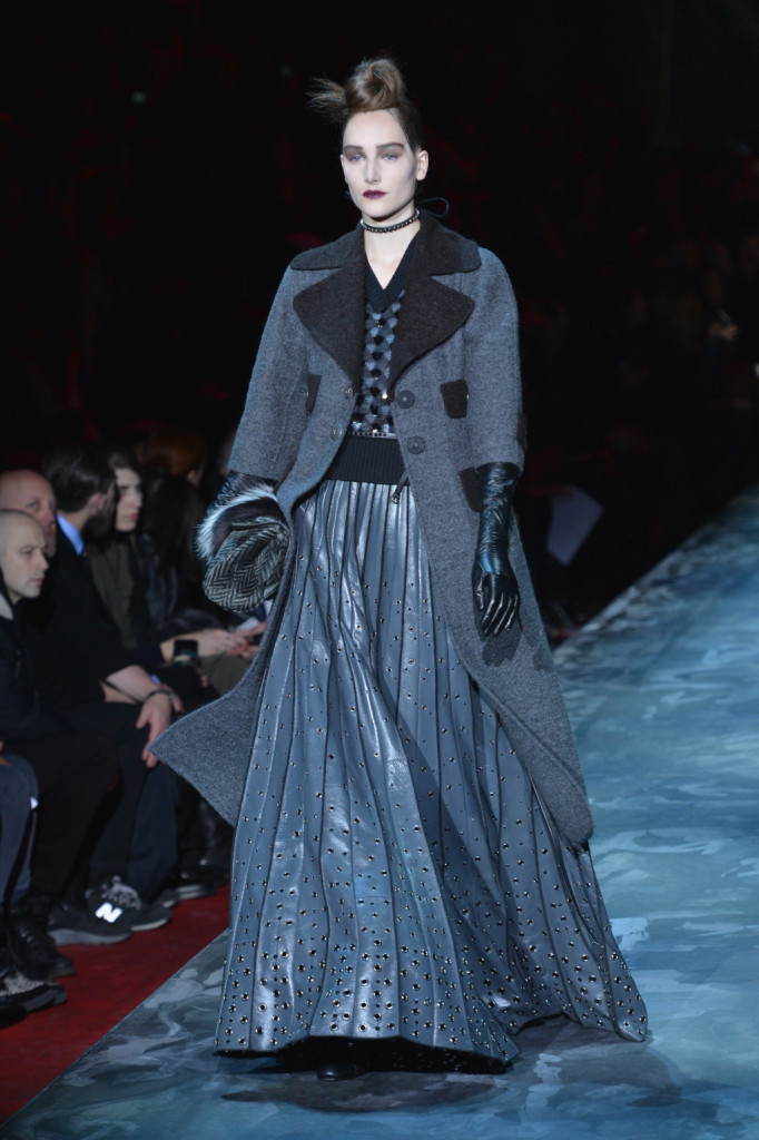 Si collocano agli estremi la collezione Autunno Inverno 2015/2016 di Calvin Klein e Marc Jacobs per ispirazione e stile, ma entrambe sono caratterizzate da uno studio teorico che rasenta la maniacalità e da una realizzazione che denota gusto e sapienza sartoriale. Calvin Klein, infatti, attinge dalle suggestioni delle Polaroid erotiche di Carlo Mollino, dalla poetica di Lou Reed e dalla femminilità free-spirited dell’artista austriaca Kiki Kogelnik per una donna vestita di pelle e latex, cappotti lunghi fino alle caviglie e trench dalla forma svasata, abiti, bluse, gonne e pantaloni con oblò e piercing, che è allo stesso tempo dominatrice e slave, forte e fragile. Marc Jacobs, invece, ha mandato in passerella una donna che veste secondo i codici militari, ma non in maniera militaresca: “La scorsa stagione è stata caratterizzata da un’influenza militare fortissima, ma fumettistica. Questa [per me, ndr] è orientata alla precisione militare, ma senza riferimenti militaristici“. La collezione del geniale stilista newyorkese diventa così vero e proprio sfoggio di tailoring, con ricami, patchwork, intarsi, decori declinati su cappotti (tanti cappotti), felpe, maglioni, abiti, pantaloni che mescolano maschile e femminile, giocano con i generi e rendono omaggio alla storia della moda e, prima ancora, allo stile e all’arte.
