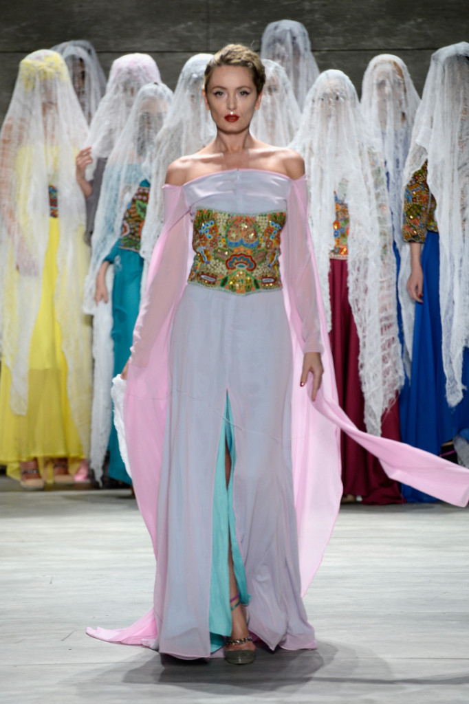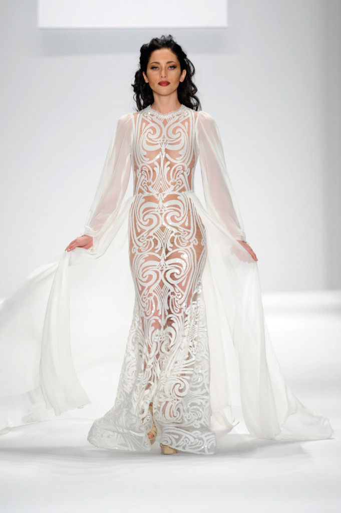 Nell’ultimo giorno della New York Fashion Week FW 2015/2016 c’è stato anche tempo per due bridal collection, caratterizzate da stili diversi e frutto di una cultura agli antipodi, ma ugualmente affascinanti. Sherri Hill, fashion designer dell’Oklahoma famosa per i suoi abiti da cerimonia (anche quelli per il ballo di fine anno, il celebre “prom”), ha portato infatti in passerella una collezione opulenta, ricca di pizzi e velluto, broccato e taffetà, caratterizzata da corpetti rigidi e maxi gonne, con sbuffi di tulle e gale, siren dress fascianti e abiti da principessa, immagine di quell’America che si è fatta da sè ed è orgogliosa di dimostrarlo. Lo stilista di origini rumene Dorin Negrau, invece, ha voluto rendere omaggio alle tradizioni e alla cultura della propria terra, rielaborando in chiave moderna e contemporanea i ricami tipici della zona della Transilvania, per una collezione di abiti da sposa sospesa tra passato e presente, magica e ricca di storia e folklore.