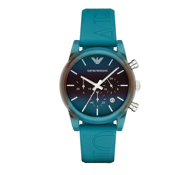 Altra interessante proposta firmata Armani è il modello Color Collection, un orologio giovane, moderno e dall’animo sportivo con cassa in poliuretano e cinturino in silicone color turchese.