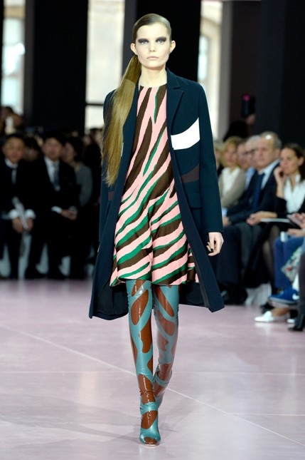 Mini dress in total black abbinati a tronchetti dai colori vibranti per un contrato deciso e netto, morbidi maglioni a collo alto, giacche dal taglio maschile indossate su ampie gonne, long dress dai colori tenui a delineare la silhouette, lunghi trench coat, camicie dalle linee pulite indossate insieme a gonne con spacchi, maxi pellicce multicolor, abiti dalle texture preziose, gonne ampie con fiocchi laterali e tulle dai delicati colori pastello, e ancora abiti multicolor dai motivi animalier e astratti a riprendere i decori anni ’60.