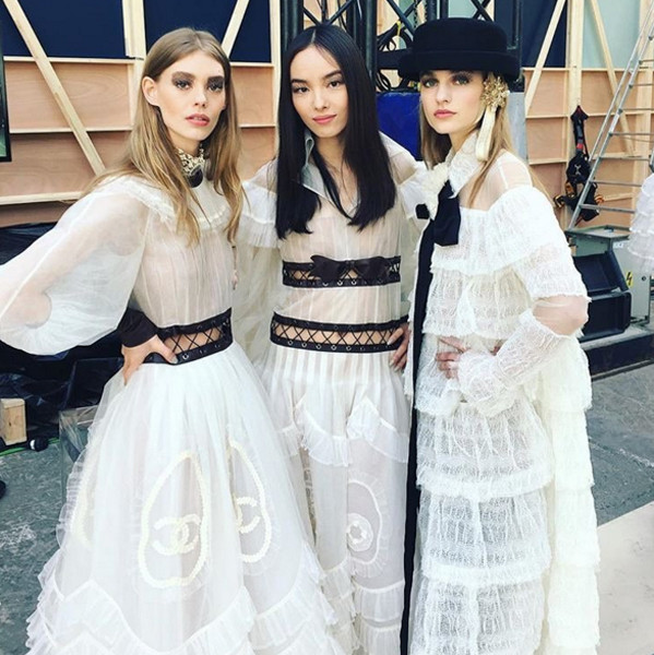 Il “Kaiser” interpreta ancora una volta, apportando nuova linfa, l’estetica della maison di Rue Cambon, e mescola elementi distintivi come le perle, le camelie e le pagliette, a un mood lussuoso e sportivo, ricercato e informale, che risponde al desiderio di bello e unico delle clienti Chanel, ma allo stesso tempo guarda avanti, seducendo nuove generazioni e nuovi target con uno spirito giovane, fresco, quasi “sbarazzino”. Una ben precisa scelta di marketing, esplicitata anche nell’allestimento dello show: una lunga “prima fila”, pensata per avvicinare da un punto di vista concreto ed emotivo il pubblico agli abiti e per fare sentire tutti i presenti realmente protagonisti, realmente interlocutori della maison.