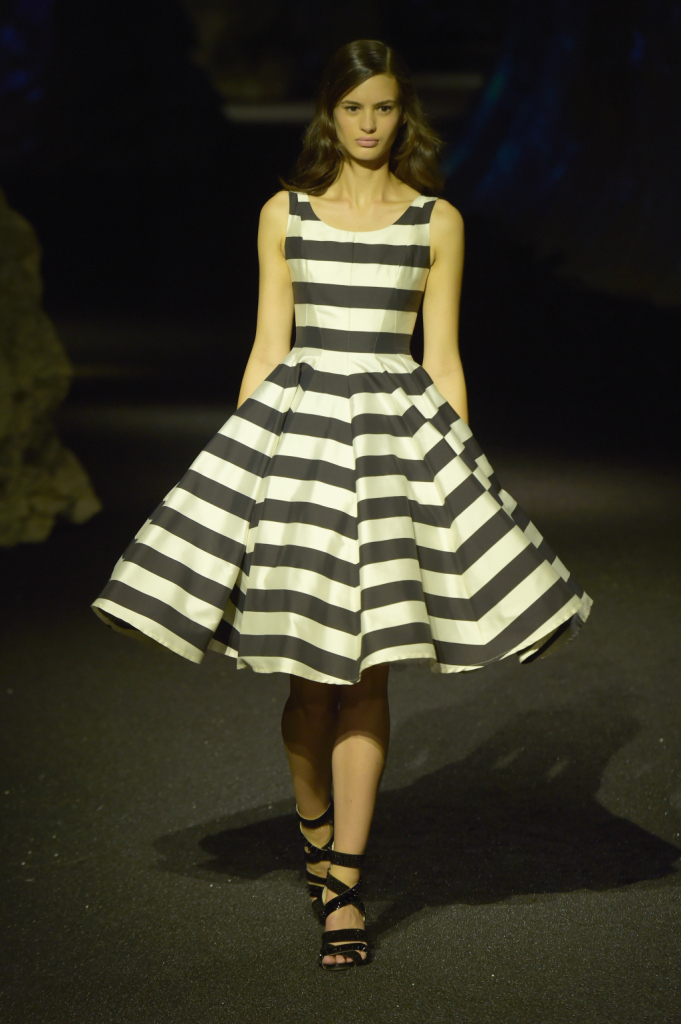 Per la sua collezione primavera-estate 2015, Philipp Plein punta sui colori navy: il rosso, il blu e il bianco. Ampi abiti illuminati da righe e bande orizzontali, tagli dall’allure retrò. Toni accesi che sfumano nel nero, quello profondo e liquido degli abissi e delle sue creature, vestiti lunghi di pizzo in black&white, tessuti lucidi e morbidi che richiamano le atmosfere dark delle grotte più segrete. Una donna, quella di Philipp Plein, sicura di sè e femminile, in grado di alternare, con grande destrezza sneakers e tacchi alti, sacche oversize dal fascino gitano e minibag super chic. E sono i contrasti quelli che colpiscono di più, con alla base l’ispirazione degli abissi, da una parte abiti lunghissimi e fluidi come acqua, dall’altro giubbotti di pelle e shorts, per una donna forte, che sa cambiare.