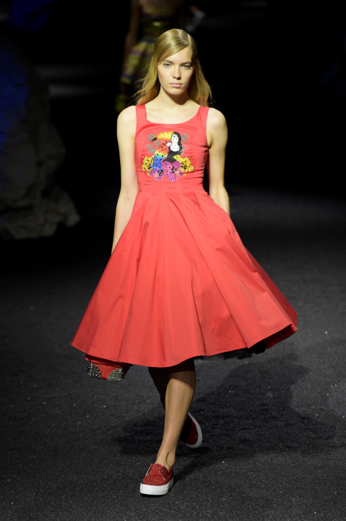 Di contro, la nuova collezione ribalta lo stile a cui Philipp Plein ci aveva abituati: ecco dunque tagli semplici anni Cinquanta, corpetti, gonne lunghe, colori forti o il classico black & white. Sul finale le proiezioni digitali hanno acceso gli abiti di 20 ballerine in total white, con stampe in 3D ed effetti spettacolari. Un successo coronato con un afterparty che ha visto come protagonista la performance live dell’ospite d’onore, il rapper britannico Tinie Tempah.