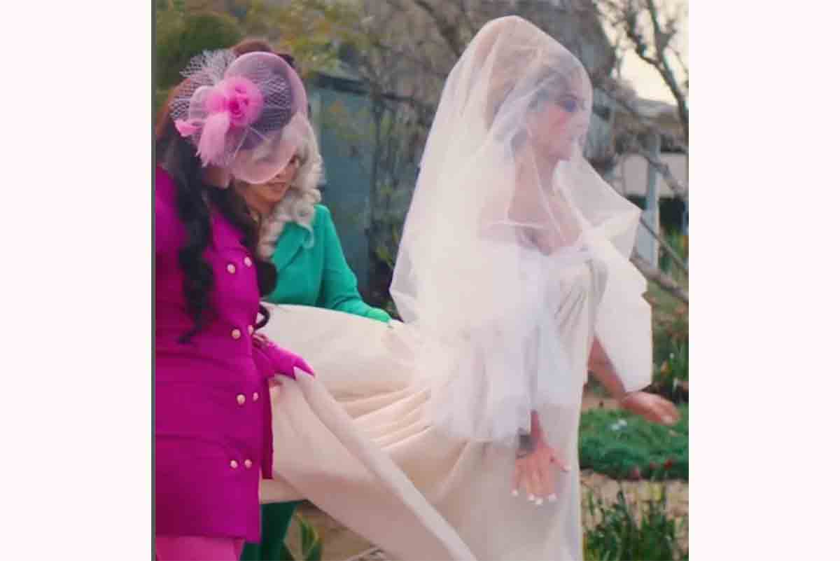 Nelle immagini condivise sui social, Rita Ora indossa un abito da sposa Yves Saint Laurent vintage del 1987. La vediamo mentre si accinge ad andare all’altare accompagnata dalle damigelle d’onore vestite con abiti dai colori sgargianti. Peccato che non tutto vada per il meglio: la sposa inciampa, si irrita con le damigelle. Le premesse per un matrimonio da favola sembrano proprio non esserci. Speriamo che le sue vere nozze non siano andate così.