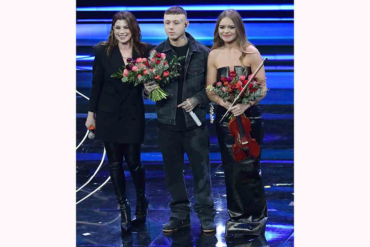 Emma Marrone, Lazza e la violinista Laura Marzodori (@Agenzia Fotogramma)