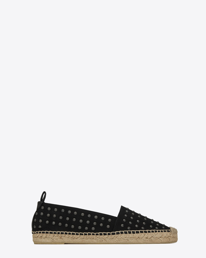 Le espadrillas di Saint Laurent Paris, invece, sono in tela nera con borchie applicate e borchiate sono pure le Rockstud Double di Valentino.