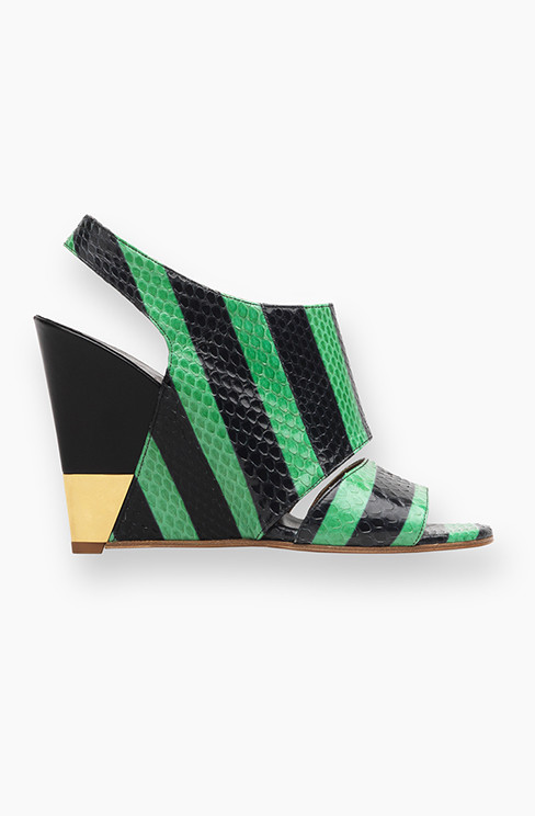 Pensati per outfit eleganti e da sera sono invece il sandalo in pelle di capretto scamosciata con profili dorati di Louis Vuitton, la signature shoe G#15 di Giuseppe Zanotti, i wedge sandals in watersnake verdi e neri di Chloé e gli ankle boots open toe di Givenchy.