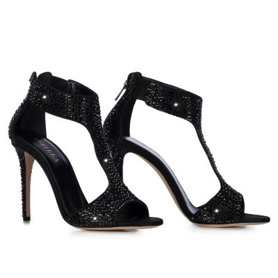 Preziosi e sofisticati sono anche il sandalo in Burma, camoscio laminato nero e cristalli, di Le Silla, il modello Clio di Liu Jo in raso con strass applicati, quello in vitello specchio e glitter con tacco gioiello e arricchito da accessorio con pietre Swarovski di Miu Miu e i sandali Louise e Lottie di Manolo Blanik, scintillianti di glitter.