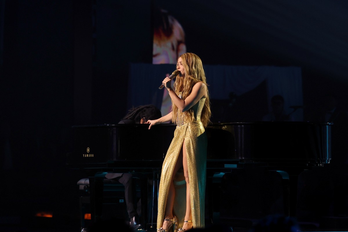 Dopo la serata dii gala dedicata a Laura Pausini “personaggio dell’anno”, a Siviglia è andata in scena la notte dei grandi premi della musica latina conferiti dalla Latin Recording Academy. Durante l’atteso evento, Shakira ha regalato ai fan una performance nella ballata “Acróstico”. Per salire sul palco, ha sfoggiato una creazione disegnata su misura per lei da Dolce & Gabbana. Si tratta di un completo dorato composto da un corsetto in tulle arricchito da un iconico cammeo della Vergine Maria e da una lunga gonna dall’ampio spacco, decorata con cristalli Swarovski.