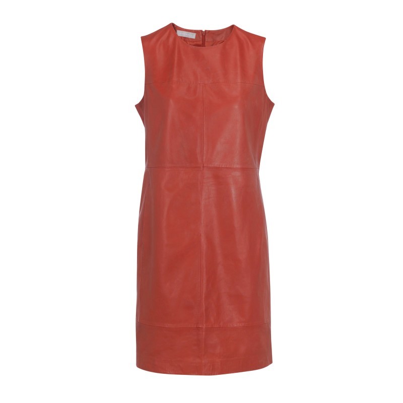 Abito senza maniche in pelle. Linea diritta. Collo a giro. Tasche verticali nel fianco. Dettagli di impunture. Il capo è foderato. 299 euro