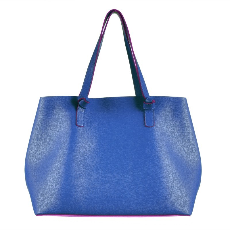 Borsa a mano in materiale accoppiato dalla costruzione a tre tasche. Chiusura con bottone e zip per la tasca centrale. Manici con nodo. Logo stampato a rilievo tono su tono. 99 euro