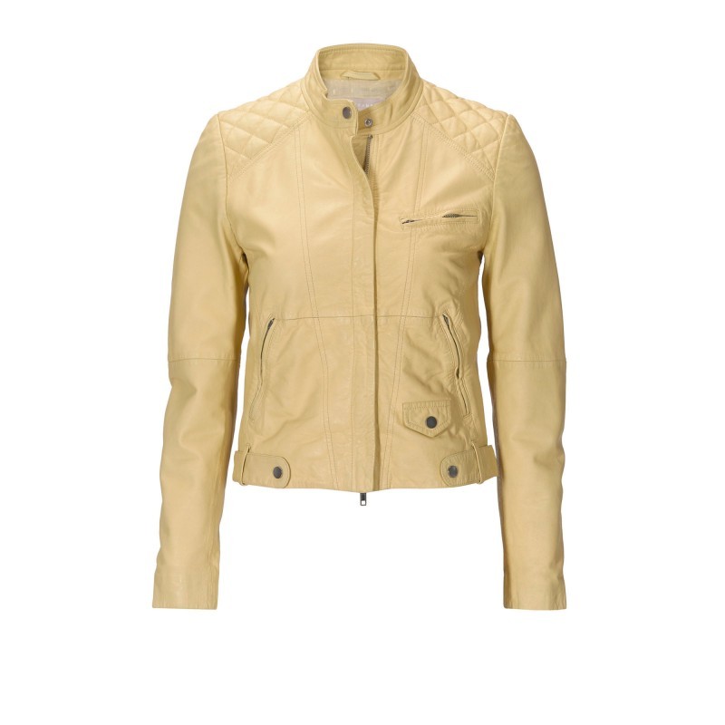 Giubbino biker in pelle lavata, motivo trapuntato sulle spalle, zip e bottoni in finitura canna di fucile 340 euro