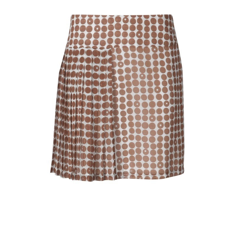 Gonna in georgette con motivo di stampa a pois ed inserto in plissè. 120 euro
