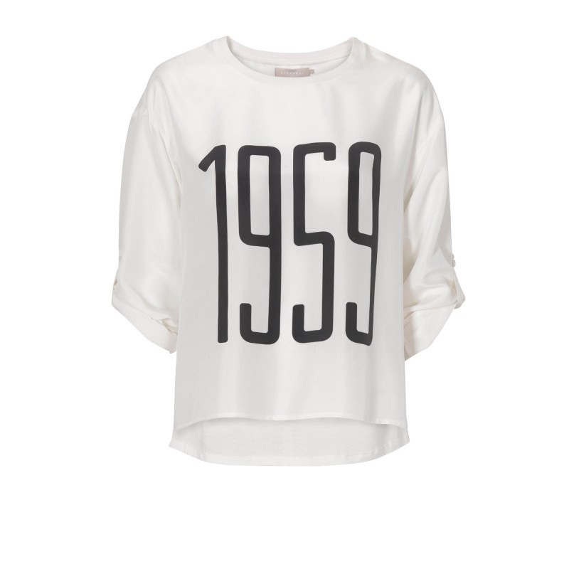 T-shirt in seta con asimetria al fondo, stampa sul davanti “1959” 120 euro