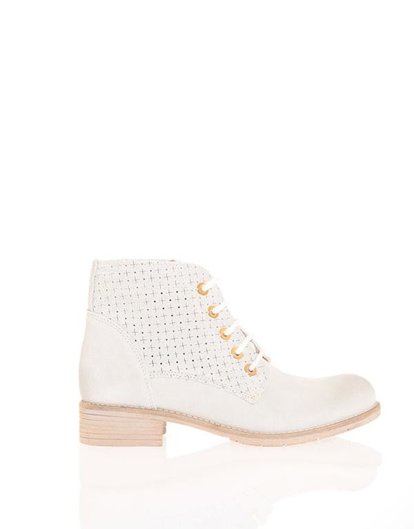 Se siete in cerca di un modello super cool, allora la scelta ricade su Pushy wamp 2. Stivaletto leggero in pelle, con motivo traforato e punta tonda; proposto nel color ghiaccio con lacci in tela bianca.