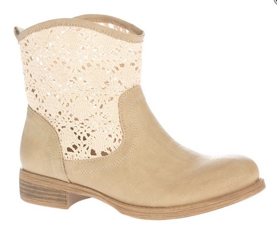 Dal marchio low cost Pittarello c’è solo l’imbarazzo della scelta: iniziando dal modello dallo stile romantico Pushywamp 5000, ankle boots a tinta unita beige, con inserti traforati a motivi floreali.