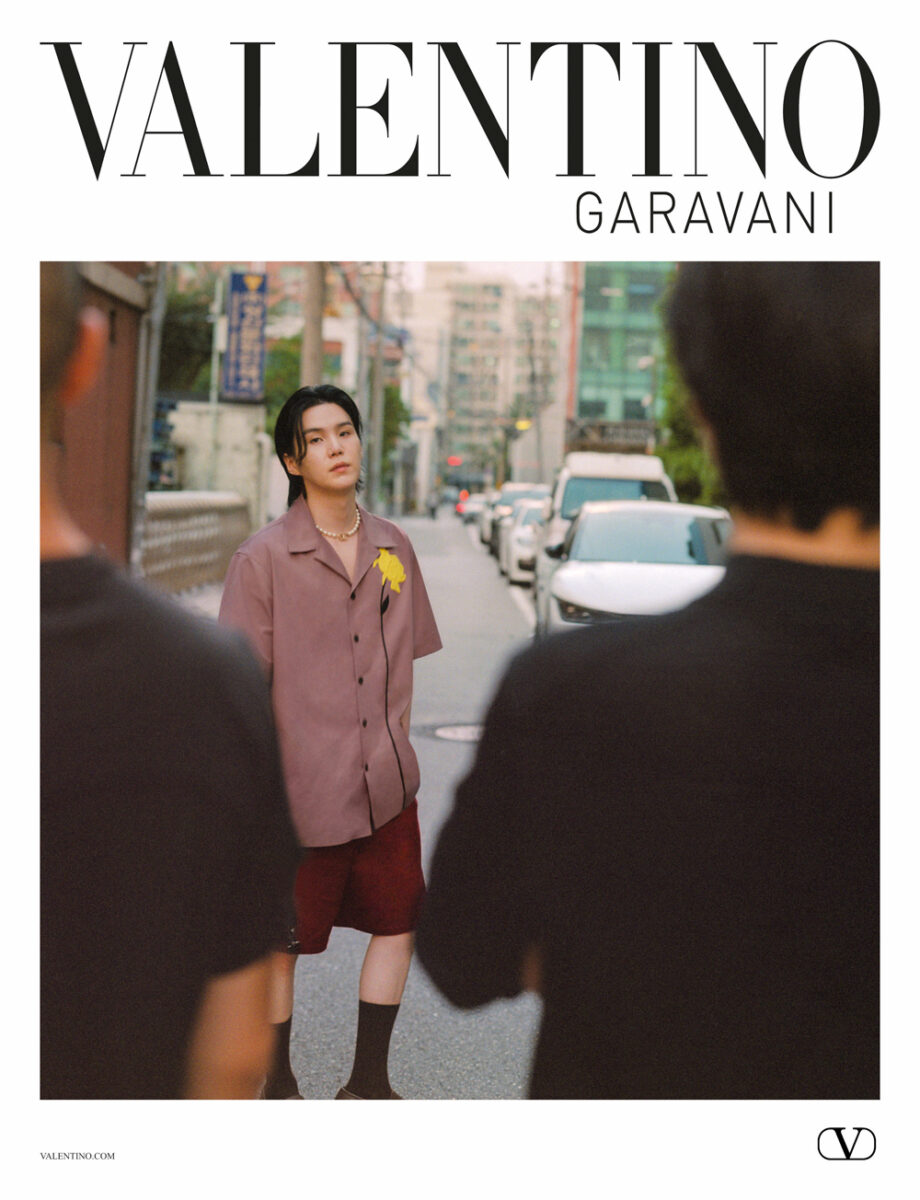 SUGA dei BTS è il volto della nuova campagna pubblicitaria di Valentino The Narratives Menswear Spring/Summer 2024. La campagna offre uno sguardo sulla vita quotidiana di SUGA, dalla frenesia della fama ai momenti più introspettivi.
