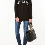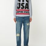 Tutti i capi spalla si abbinano con la vasta gamma di jeans disponibile nella collezione autunno/inverno 2014-2015. Modelli skinny, boyfriend, girlfriend, a zampa e con strappi, tutte le varianti sono disponibili in diverse colorazioni dal nero al classico denim fino a effetti macchia. I jeans skinny grazie alla loro aderenza sono l’ideale da abbinare alle t-shirt con dettaglio gioiello per creare un outift dal gusto urban chic. Infatti, tutti i jeans rispecchiano perfettamente uno stile urban che diventa perfetto se abbinato agli altri capi in denim e alle maxi felpe della collezione decorate con scritte e motivi navy.